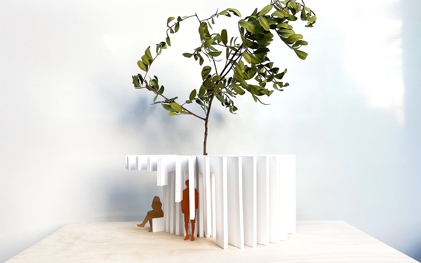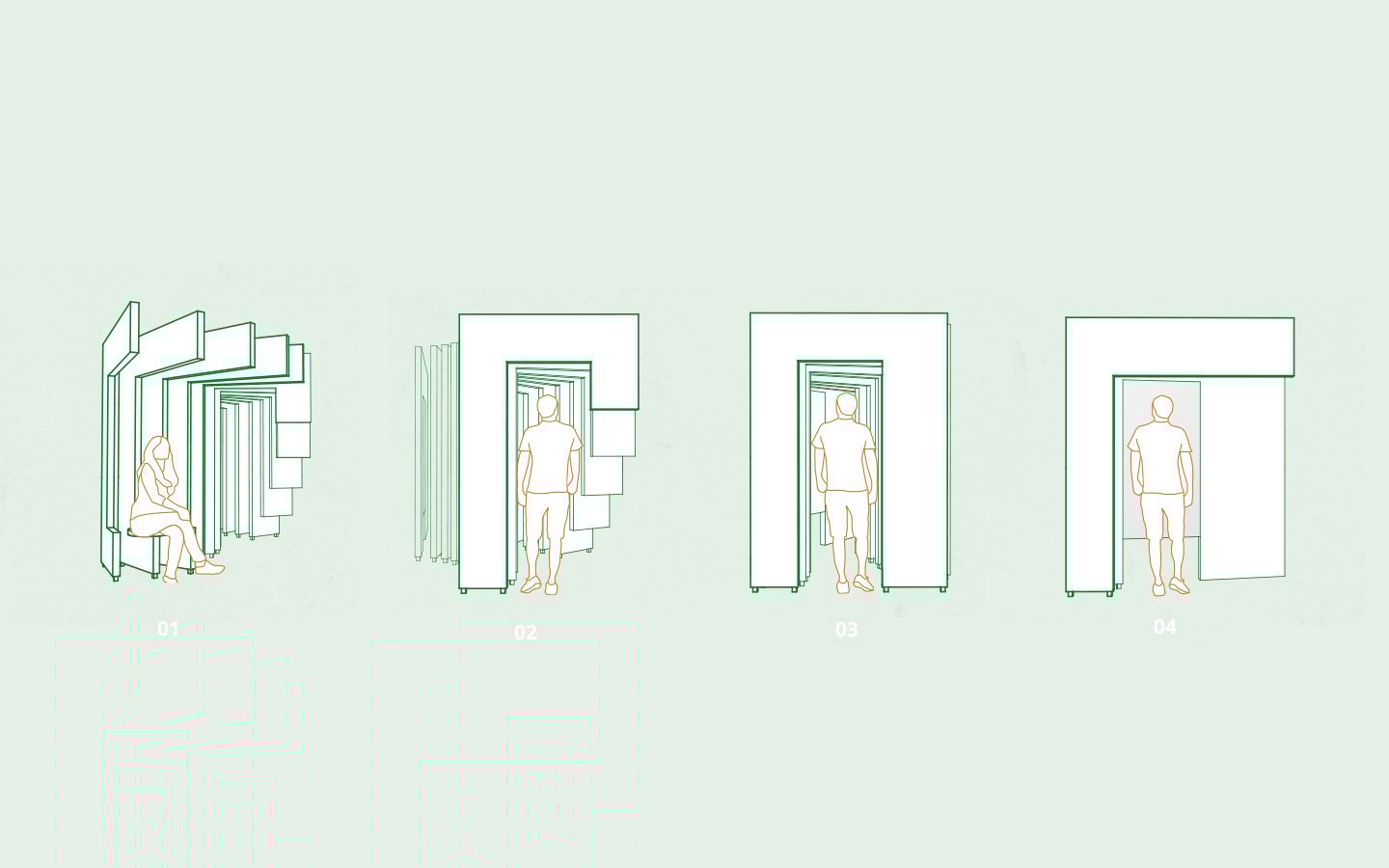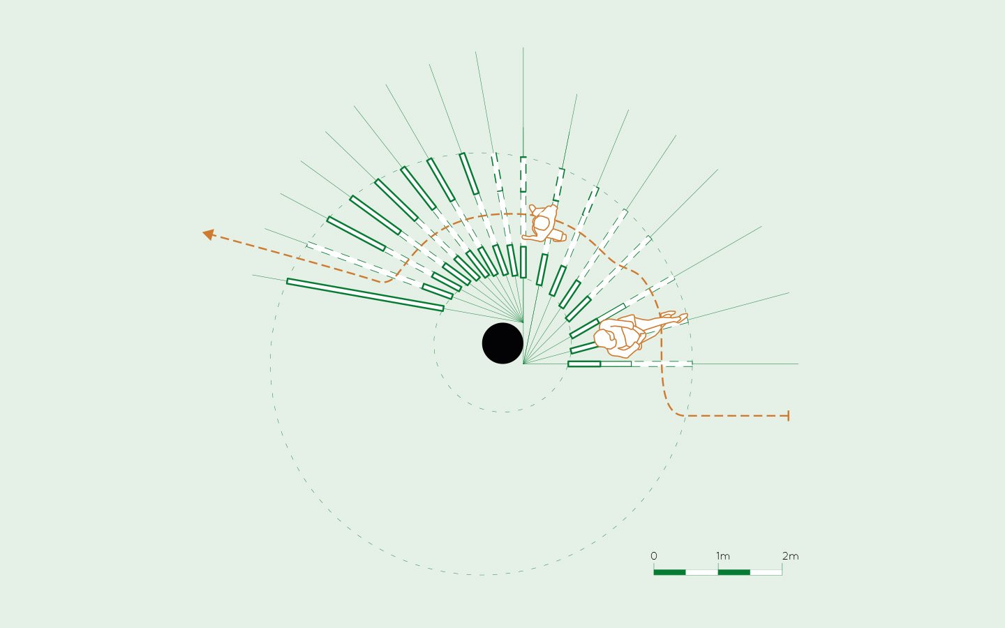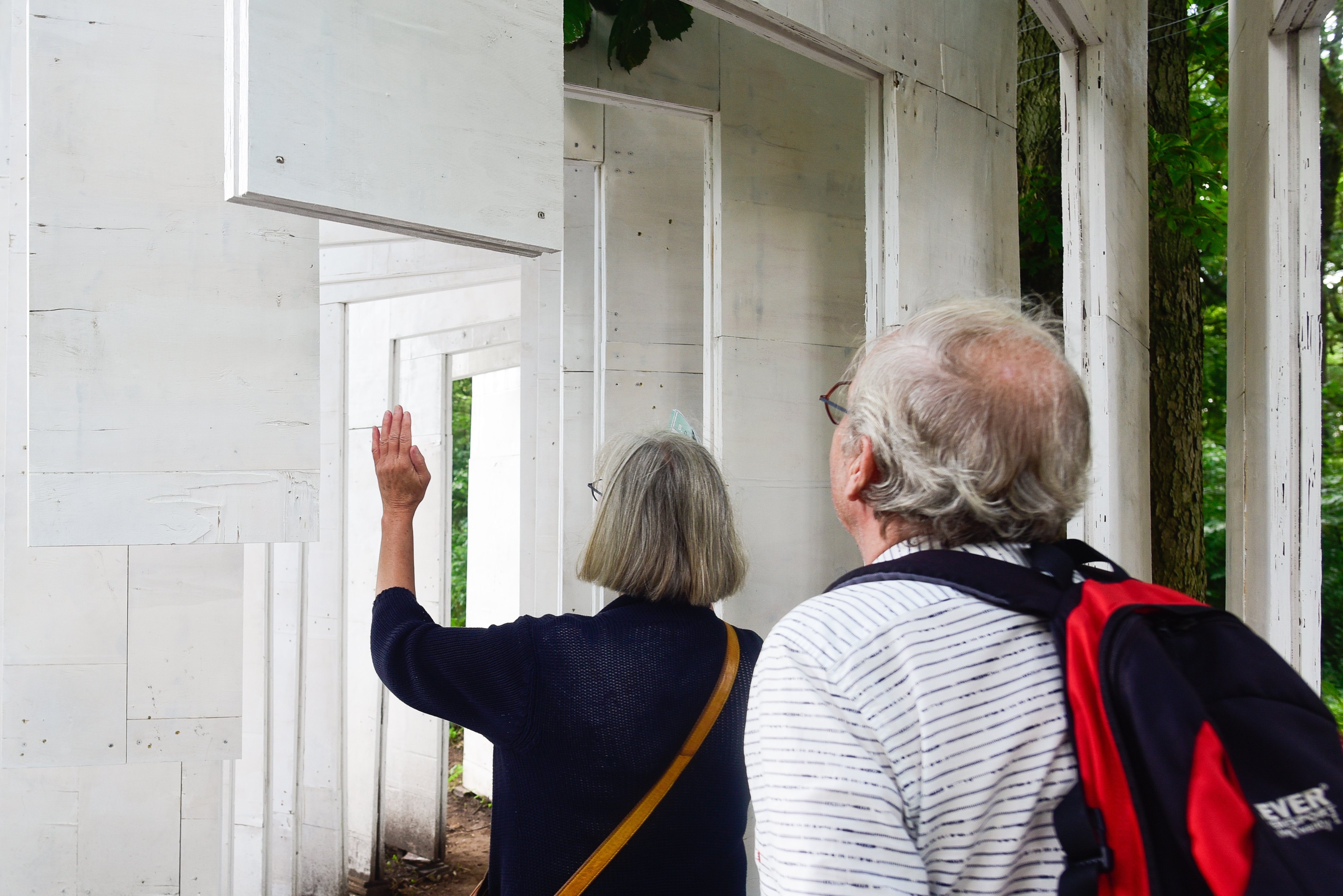 Een verhaal. Iedereen heeft een verhaal. Maar door de drukte van de wereld waarin we leven, verliezen we onszelf soms in het collectief. We vergeten te kijken en te luisteren. Naar de wereld, naar elkaar, en naar onszelf. Wij als mens houden ons dagelijks bezig met onze plek op de wereld, en wat wij kunnen doen om bij te dragen aan een beter milieu. We merken vaak dat het makkelijk is om te vergeten dat ieder individu hier iets aan bij kan dragen, dat alle kleine beetjes wel echt helpen. We zouden graag meer bewustzijn willen creëren voor ieders eigen verhaal in het collectief, en het belang van ieders eigen bijdrage aan een betere wereld. Onze folly vertelt dit verhaal. En met haar verhaal helpt ze jou op zoek te gaan naar jouw eigen verhaal. Omsloten Ontmoeting vertelt een verhaal over ons allemaal. Haar witte strakke vlakken vormen een scherp contrast met haar omgeving. Als de mens en de natuur. Ze maakt ons bewust van onze omgeving, en vraagt je na te denken wat de natuur voor jouw betekent. Wat is jouw plek in deze wereld? Ga zitten en kom tot rust, met uitzicht op de omringende landschap. Word nieuwsgierig en laat je leiden door de Folly. Laat je omarmen. Wanneer je de folly in loopt verdwijnt het zicht op de natuur en wordt alles geleidelijk wit. Wat blijft er over als de natuur verdwijnt? Wat is onze rol hierin? Langzaam word je helemaal omsloten door de folly en zie je alleen nog maar wit. Aan het eind is een spiegel. Wat zie je daar? Een ontmoeting met jezelf. Waar sta jij in deze wereld, wat is jouw verhaal?