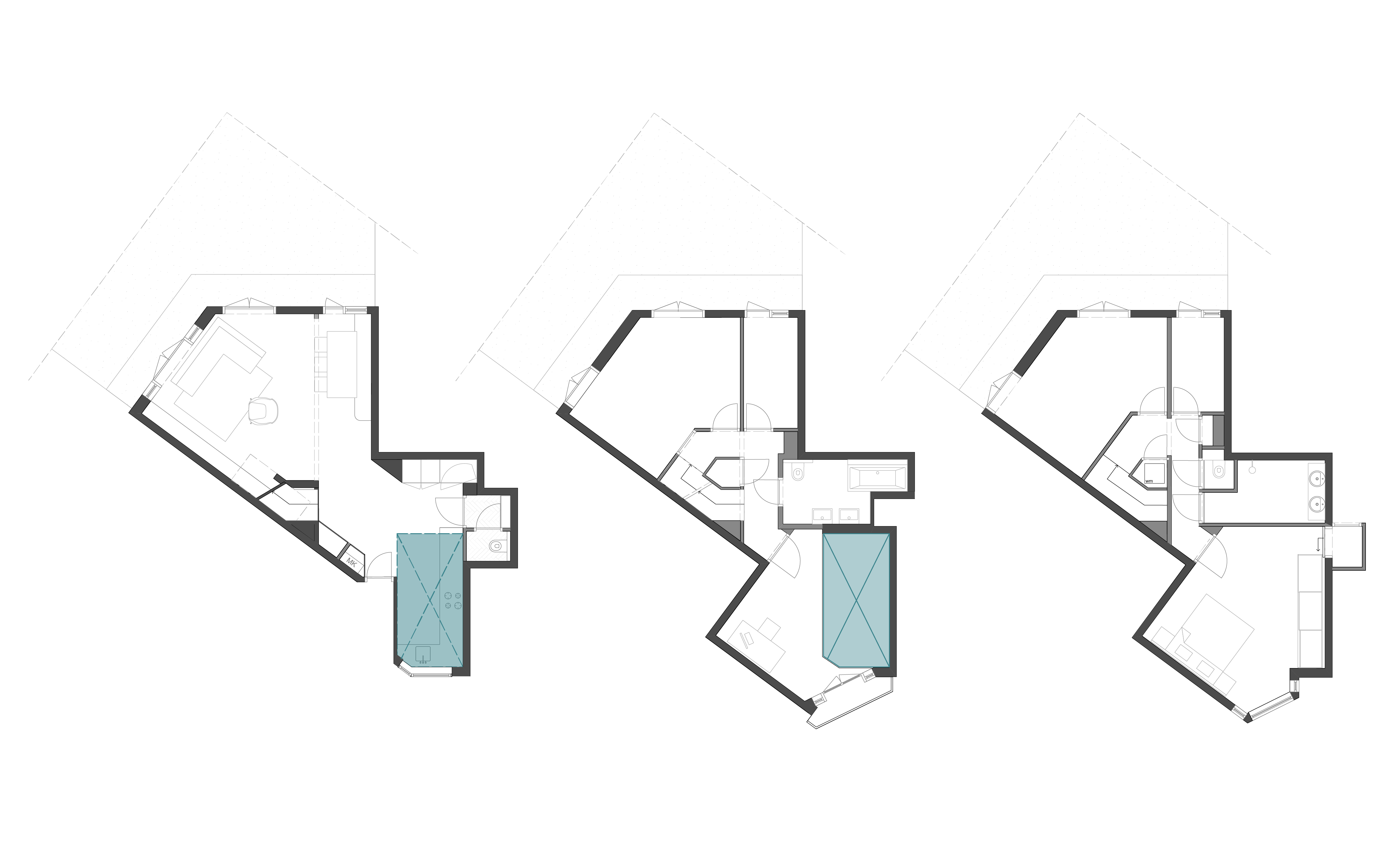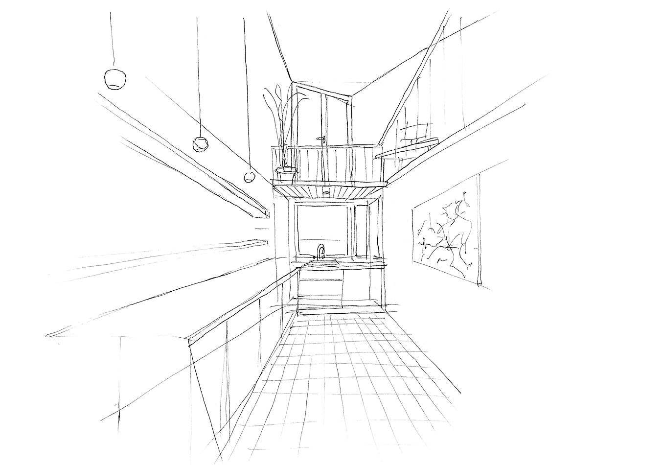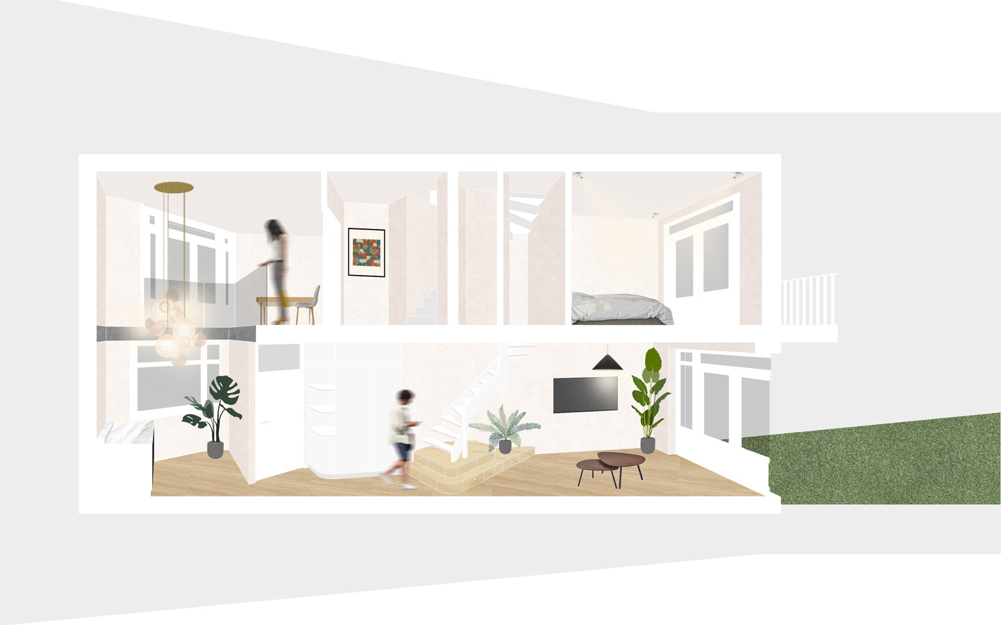 Om een goede verbinding te realiseren in een pand met drie verdiepingen, werd een vide gecreëerd boven de keuken. Dit ontwerp voegde niet alleen een visuele verbinding tussen de woonlagen toe, maar zorgde ook voor een flinke verbetering van de ruimtelijke kwaliteit. Wat voorheen het donkerste deel van de woning was, veranderde in een centrale, lichte ruimte die de verdiepingen op een natuurlijke manier met elkaar verbindt. Het resultaat is een harmonieus geheel waarin ruimte en licht optimaal benut worden.