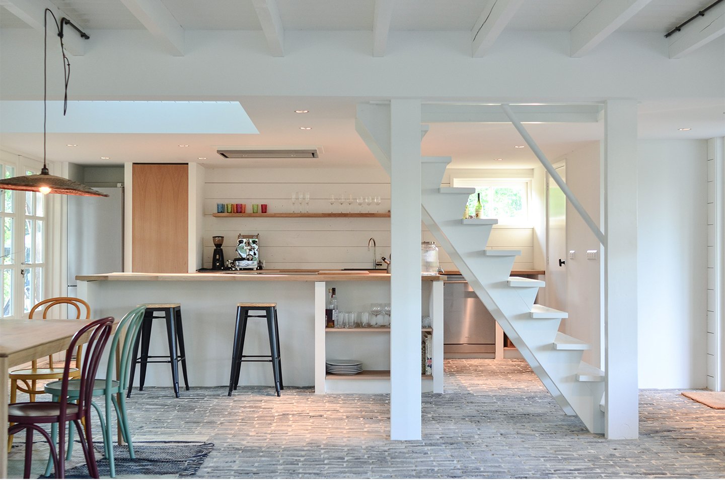 Dit vakantiehuis stond al een tijdje leeg, was flink gedateerd en vervallen. Het was de wens van de opdrachtgever om hier met zijn gezin en eventuele gasten te kunnen genieten van de rust en natuur die de Vinkeveense plassen te bieden hebben. De opgave was om met minimale middelen een simpel, robuust en warm verblijf te maken. De kracht van dit project zit hem in het verwijderen van de aftimmeringen en stuc lagen waardoor originele materialen weer zichtbaar zijn geworden.