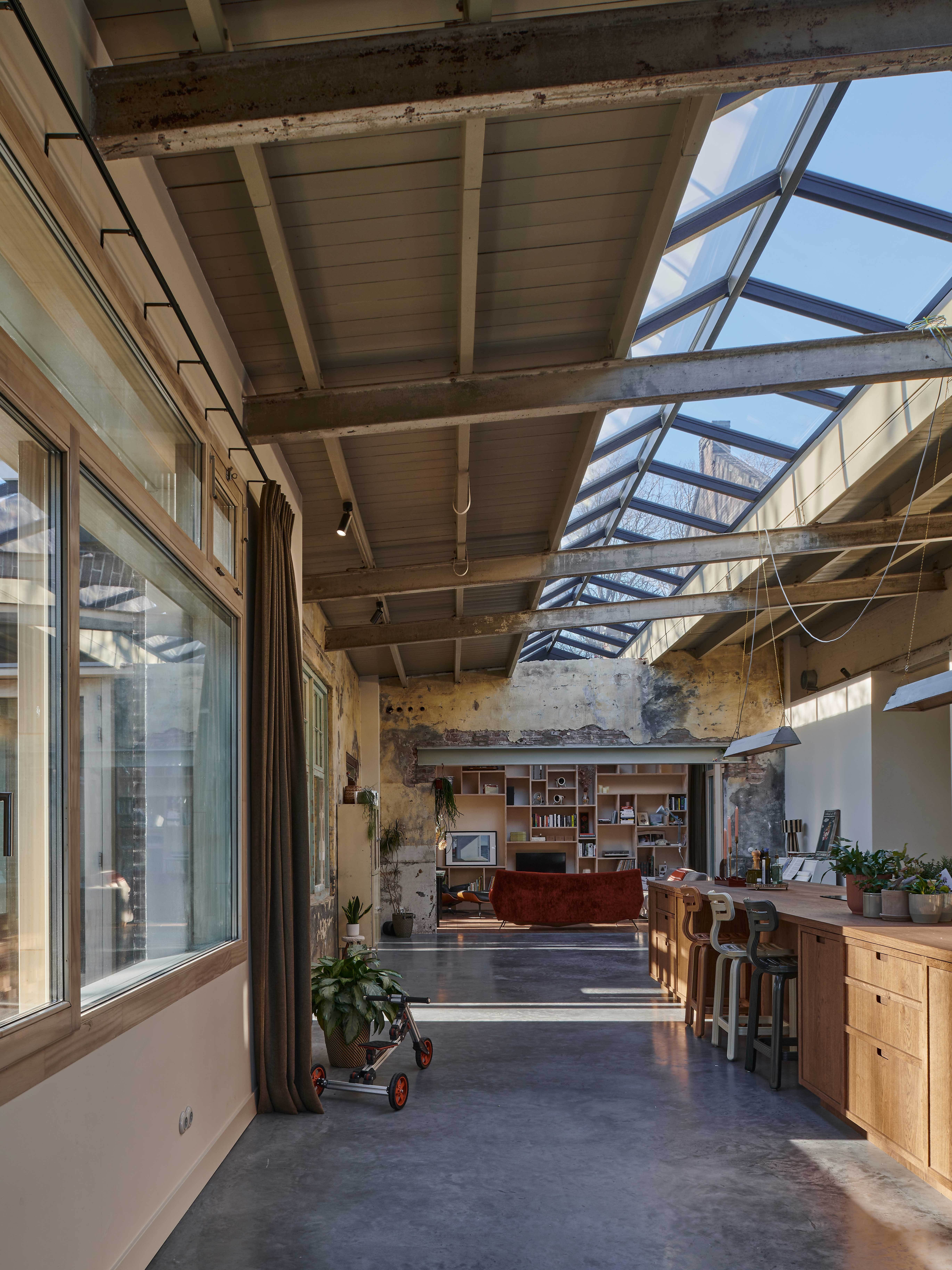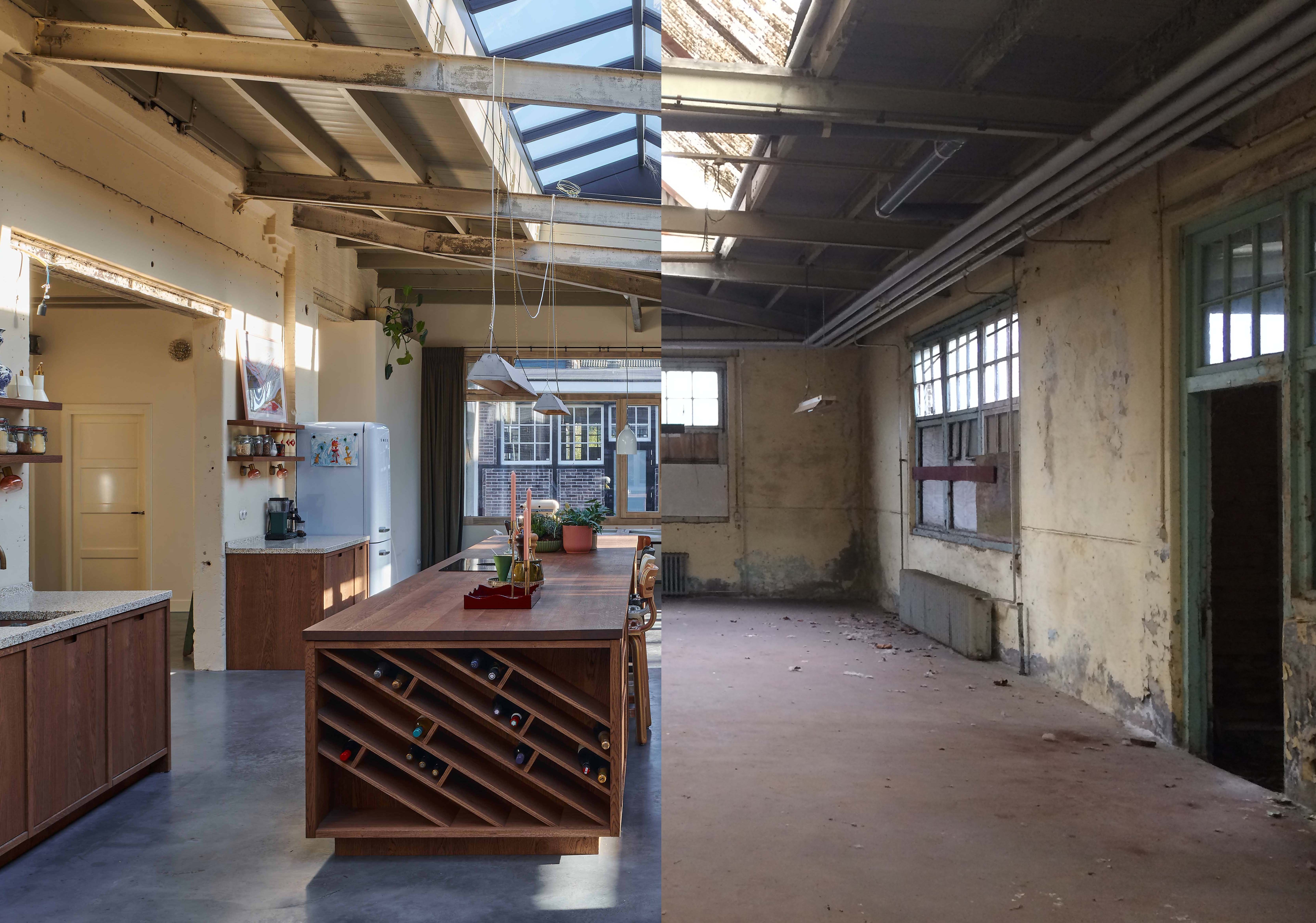 Onze opdrachtgever is aangesloten bij een bouwgroep die een oude werkplaats op het Hembrugterrein gaat transformeren tot 8 woonlofts rondom een binnentuin. Het casco wordt ontworpen door <a href=\"https://www.bureausla.nl/?lang=en\">bureau SLA</a>. Voor de omgang met o.a. gevelopeningen is er een masterplan opgesteld. Binnen dit kader kunnen de bewoners zelf aan de hand van hun eigen plattegrond keuzes maken over uitvoering en afmetingen. Studio SAAM is verantwoordelijk voor de indeling en afwerking van één van deze lofts. De opdrachtgever heeft hoge ambities op het gebied van duurzaamheid en circulariteit wat ons uitdaagt om zoveel mogelijk hernieuwbare grondstoffen en materialen te gebruiken.
